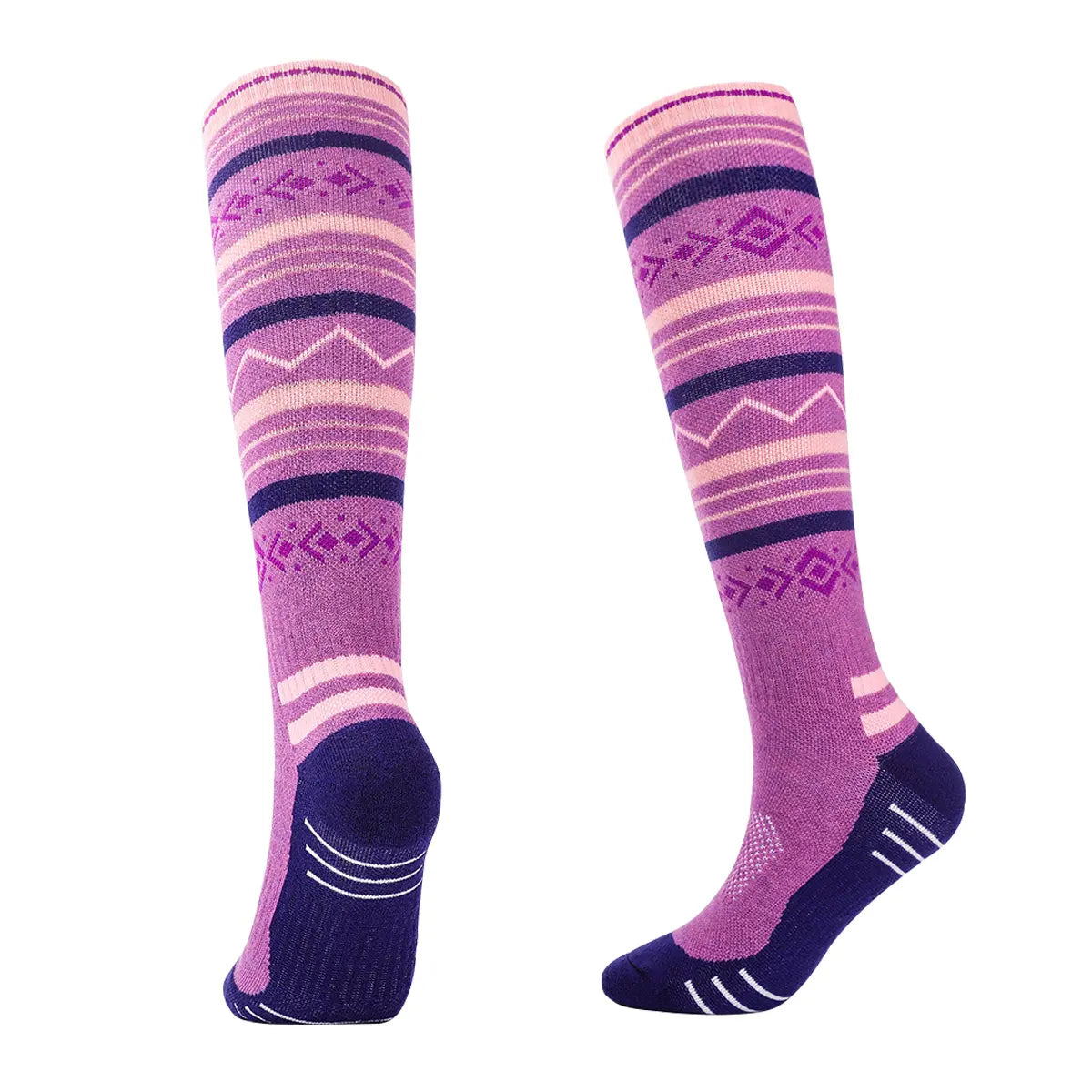 PREMIUM MERINO WOOL: thermal ski socks are made of 40% acrylic fiber, 27% Merino Wool, 10% Polyester, 5% Spandex, 18% Nylon. These socks have great temperature regulation and excellent moisture control to keep feet fresh and odor free.