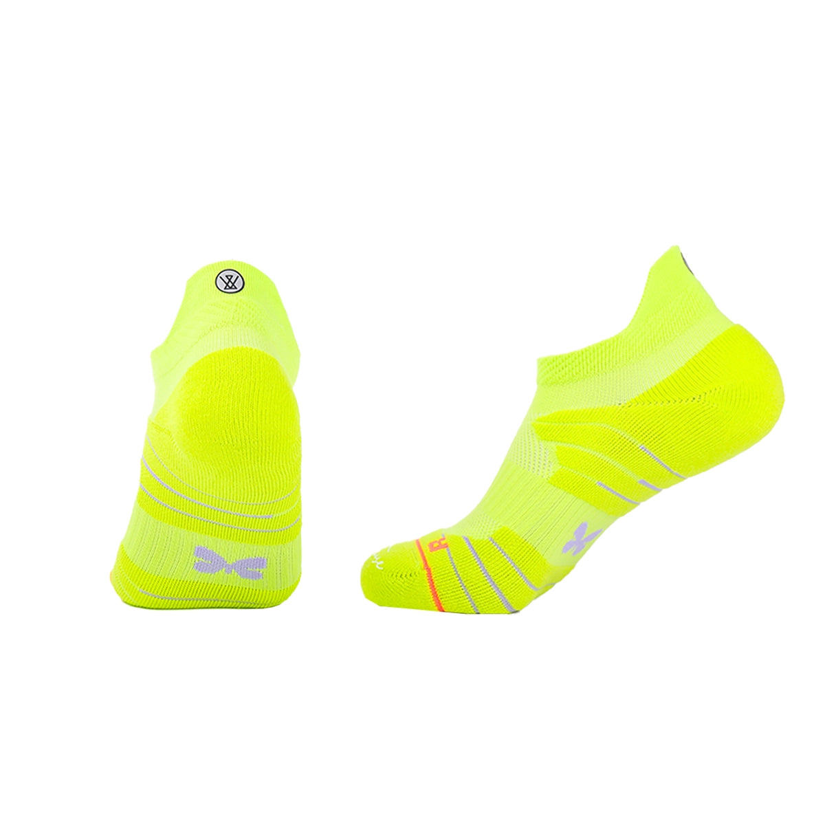 Breathable mesh fabric and ribbed ankle cuffs enhance airflow and moisture control. Reinforced arch cushioning targets high-impact zones, while seamless construction reduces friction during runs. Lightweight design ensures durability and a snug, adaptive fit for intense workouts.